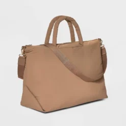 Make weekend trips easier and more convenient with your belongings handy in the Athleisure Soft Puff Weekender Bag from A New Day™. This solid-color weekender bag features both interior and exterior pockets to help keep your cell phone and other items organized. Made with at least 90% recycled polyester, this bag feels super soft, and it comes with double handles and an adjustable strap to give you multiple carrying options.