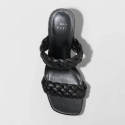 Give yourself a lift in height and style with these Tiana Heels from A New Day™. Set on 3.25-inch block heels with a geometrical texture, these open-toe sandals have a rubber-like outsole and a soft insole with comfortable lining. The braided band across the front and a matching instep band give the slip-on sandals a chic look, while their square-toe silhouette offers a modern touch that will go well with dresses, office wear and other ensembles.