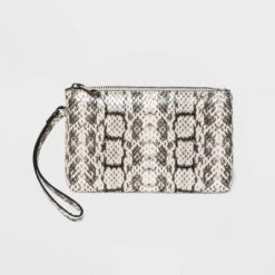 Keep your phone and other on-the-go items secure and easily accessible with this Wristlet Pouch Clutch from A New Day™. This slim wristlet pouch with a two-tone snake-skin pattern on the front side makes an on-trend piece in your everyday accessories, and its small size slips easily into your handbag. The zip closure on the main compartment opens to reveal an interior cell phone pocket. Plus, it has a wrist strap that can be attached to your favorite handbag or looped around your wrist for versatile accessorizing.